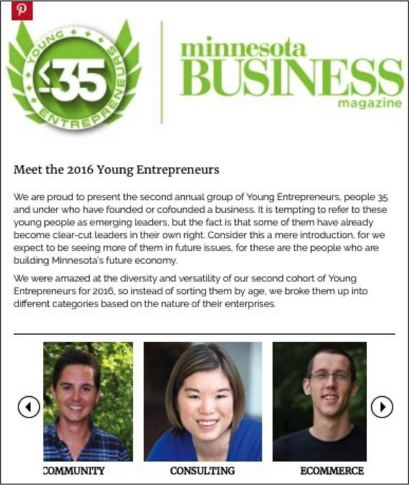 2016 Young Entrepreneur as founder of Renew Hope, a business that aims to inspire people to seek new opportunities and to market and advocate for themselves. “We’ve changed people’s lives and we’re making change for the better.”